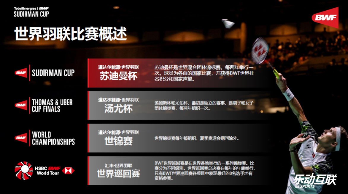 赛事级别——世界羽联主办的代表国家整体水平的全球最高水平的混合团体国家队赛事,每两年举办一届,云集全球各国顶级羽毛球明星,赛事是获得国际羽联排名积分的重要赛事